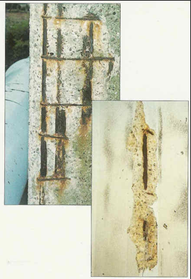 Corrosion of the reinforcement cast into concrete is usually visible through spalling and delamination of the concrete surface.